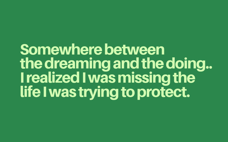 It was about having more life with the people you love and it hurts when you catch yourself building the dream while watching that life pass in the background.